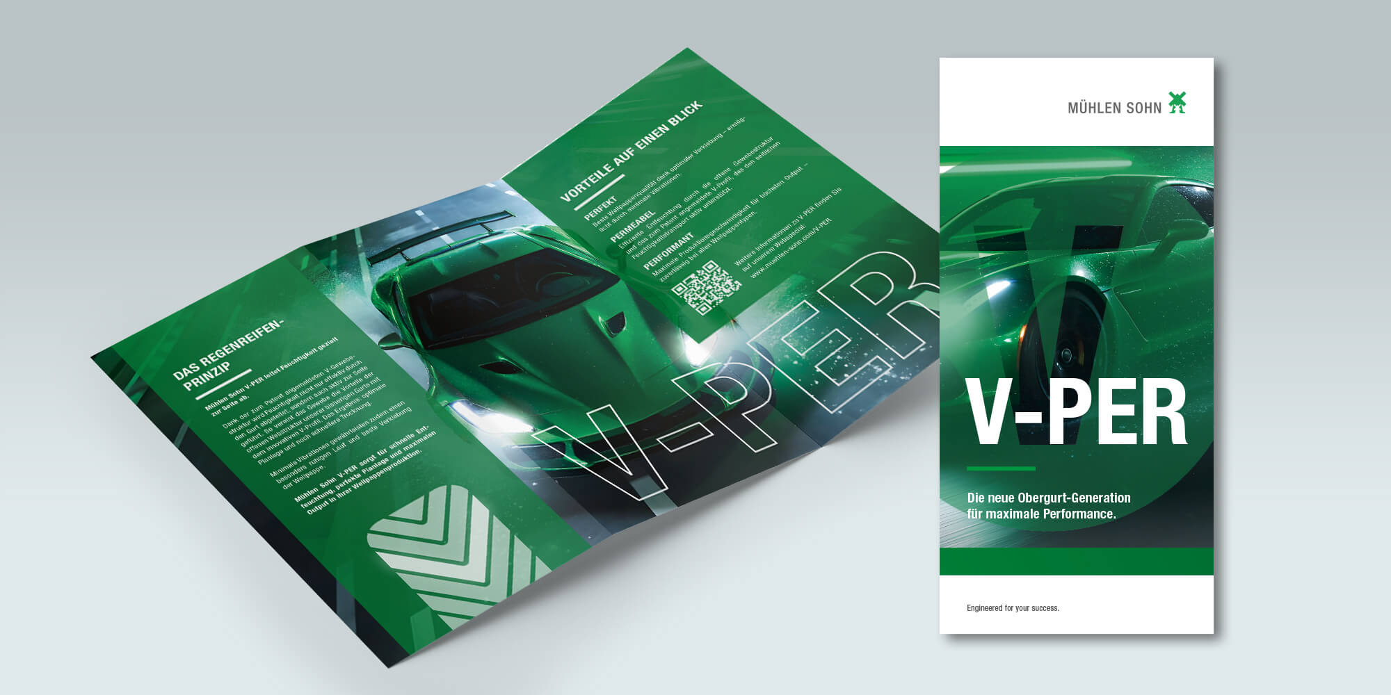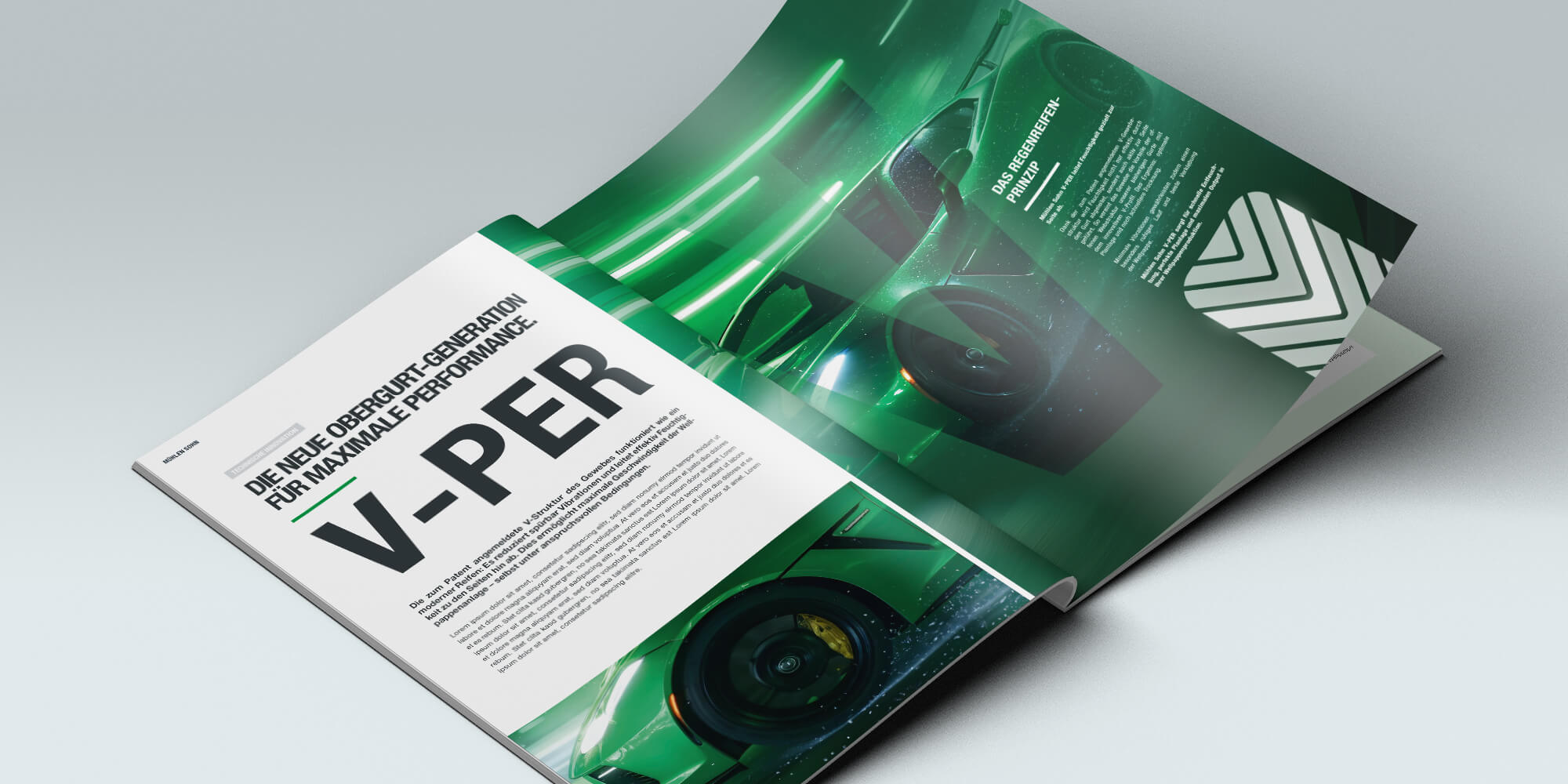 Als Key Visual dient die legendäre Dodge Viper, KI-generiert als Brücke zwischen Technologie und Emotion. Das Brand-Element „V“ fungiert als starkes, wiedererkennbares Symbol – Sinnbild für Energie, Dynamik und Überlegenheit.
