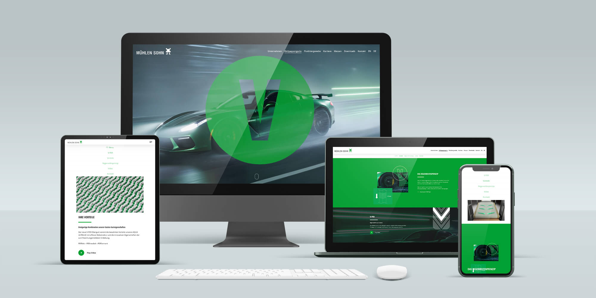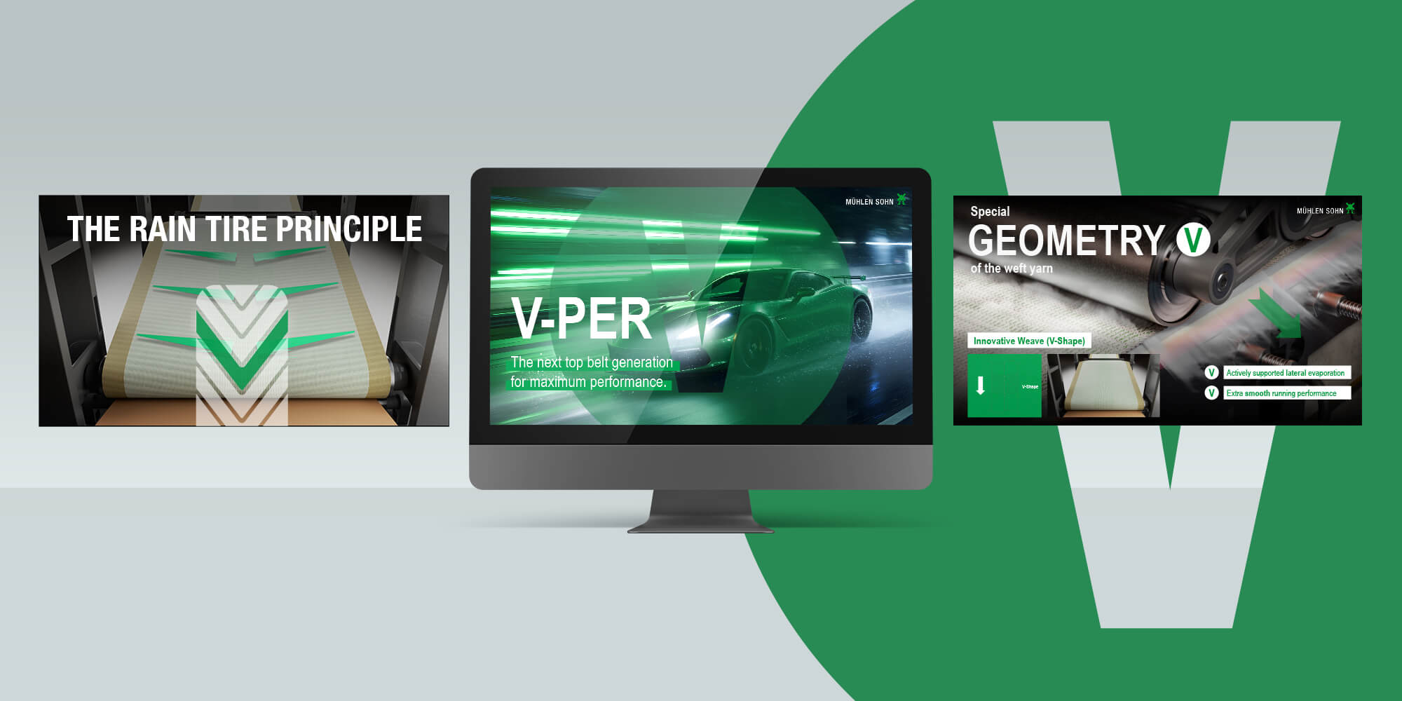 Mühlen Sohn ist Weltmarktführer in der Entwicklung und Herstellung hochwertiger Gurte für die Wellpappeindustrie. Mit dem neuen V-PER-Gurt setzt das Unternehmen einen Meilenstein in Innovation und Performance: Die patentierte V-Struktur des Gewebes arbeitet nach dem Prinzip eines modernen Regenreifens – sie reduziert Vibrationen, leitet Feuchtigkeit gezielt zu den Seiten ab und ermöglicht so maximale Produktionsgeschwindigkeit bei perfekter Planlage und höchster Qualität.